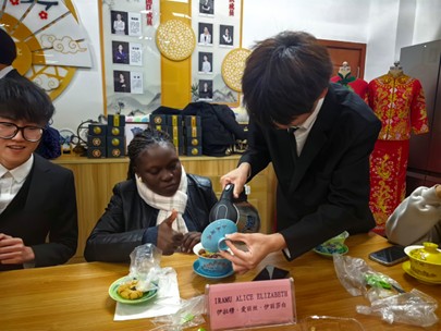 为进一步增进中国和乌干达文化的桥梁,体现中国人“茶和天下”的胸襟,感受非物质文化遗产的鲜活脉动。11月18日,纺织与服装技术系开展“以茶为媒”主题文化交流活动。这不仅仅是一场茶艺展示,更是为乌干达访学学生们打开的一扇中国文化之窗,在这里,他们将品味到千年茶道的醇香,触摸中国陶瓷的温润,感受非遗技艺的生命力。